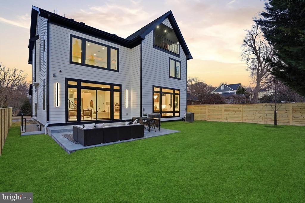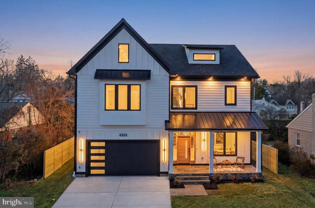 Defined by full-height Palladian glazing and layered entertaining spaces, this four-level modern residence is composed with scale, proportion, and precision. Spanning approximately 6,000 finished square feet, the home is structured around volume and natural light. A clean-lined exterior with black-framed windows and standing seam metal roof accents establishes a confident contemporary presence, while a dramatic two-story foyer anchored by sculptural lighting introduces the architectural tone within. Floor-to-ceiling Palladian glass frames the main level, drawing light across open living spaces designed for both daily function and elevated entertaining. A dramatic full-height stone fireplace wall anchors the living room. The kitchen centers on a fluted waterfall island with mixed cabinetry, brass accents, pot filler, curated lighting, and integrated surround sound. The primary suite operates as a private retreat with its own fireplace and a spa-level bath featuring refined stone finishes, freestanding soaking tub, and frameless glass enclosure. The fully finished fourth level presents a rare lifestyle offering — a private lounge with wet bar and full bath opening to a covered rooftop veranda with fireplace. The walkout lower level operates as a fully independent living environment, complete with kitchenette, bedroom, full bath, dedicated movie theater or private fitness studio, expansive recreation lounge, and exterior access. Three fireplaces. Four finished levels. Whole-home audio. Two-car garage. Positioned minutes from Downtown Bethesda, NIH, Walter Reed National Military Medical Center, Suburban Hospital, and Bethesda Row, the residence offers architectural scale with immediate access to the region’s premier medical and lifestyle centers. Modern. Composed. Intentional.